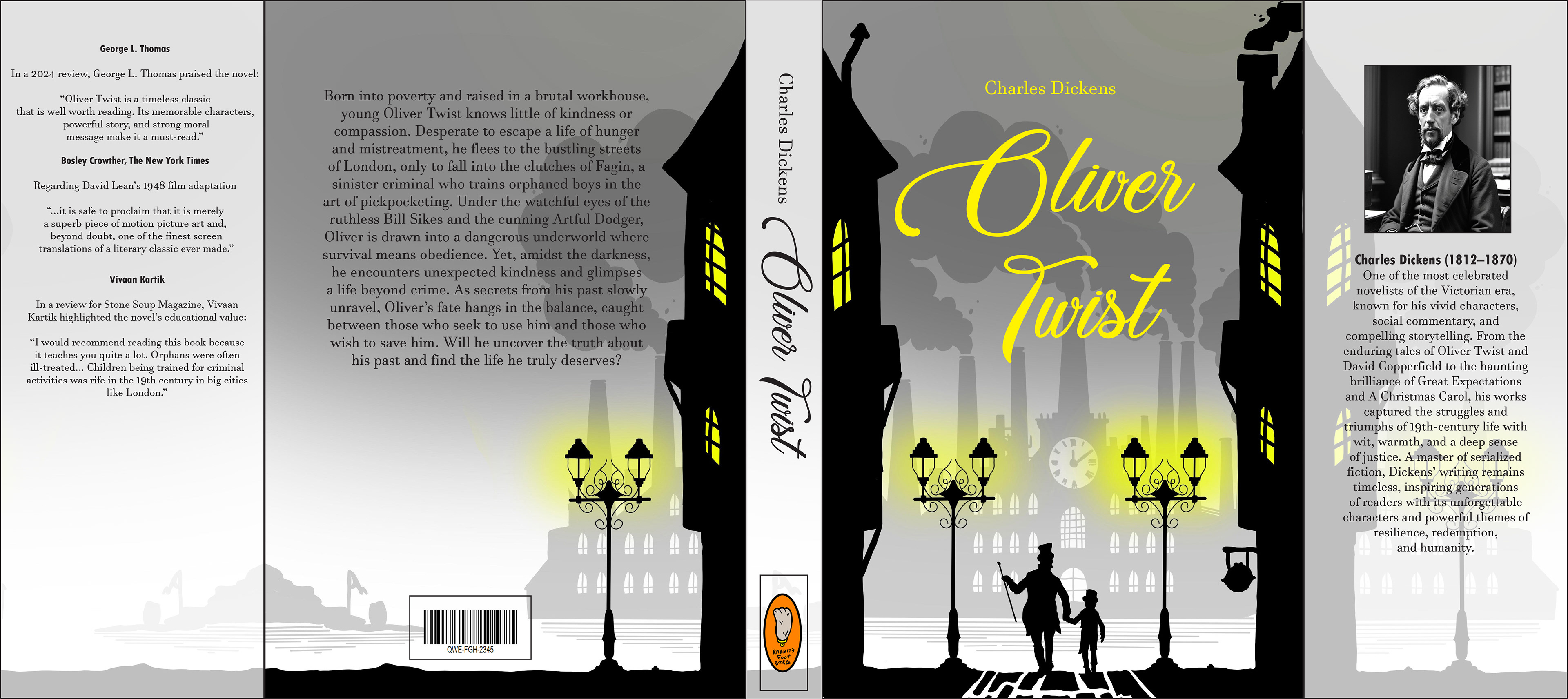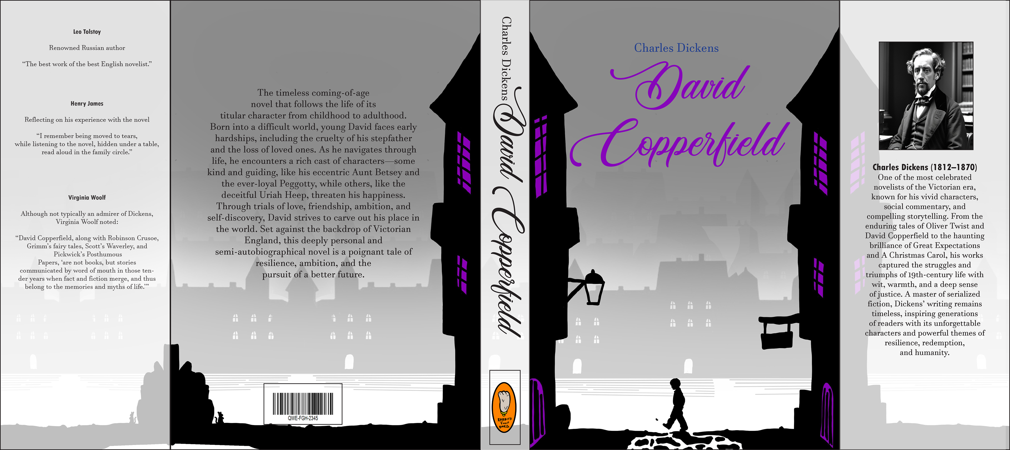 This redesign series presents David Copperfield, Great Expectations, and Oliver Twist as a unified collection set within the same fog-filled Victorian world. Each jacket uses grayscale cityscapes, glowing windows, and silhouetted figures to convey the story's emotional tone without illustrating literal scenes.