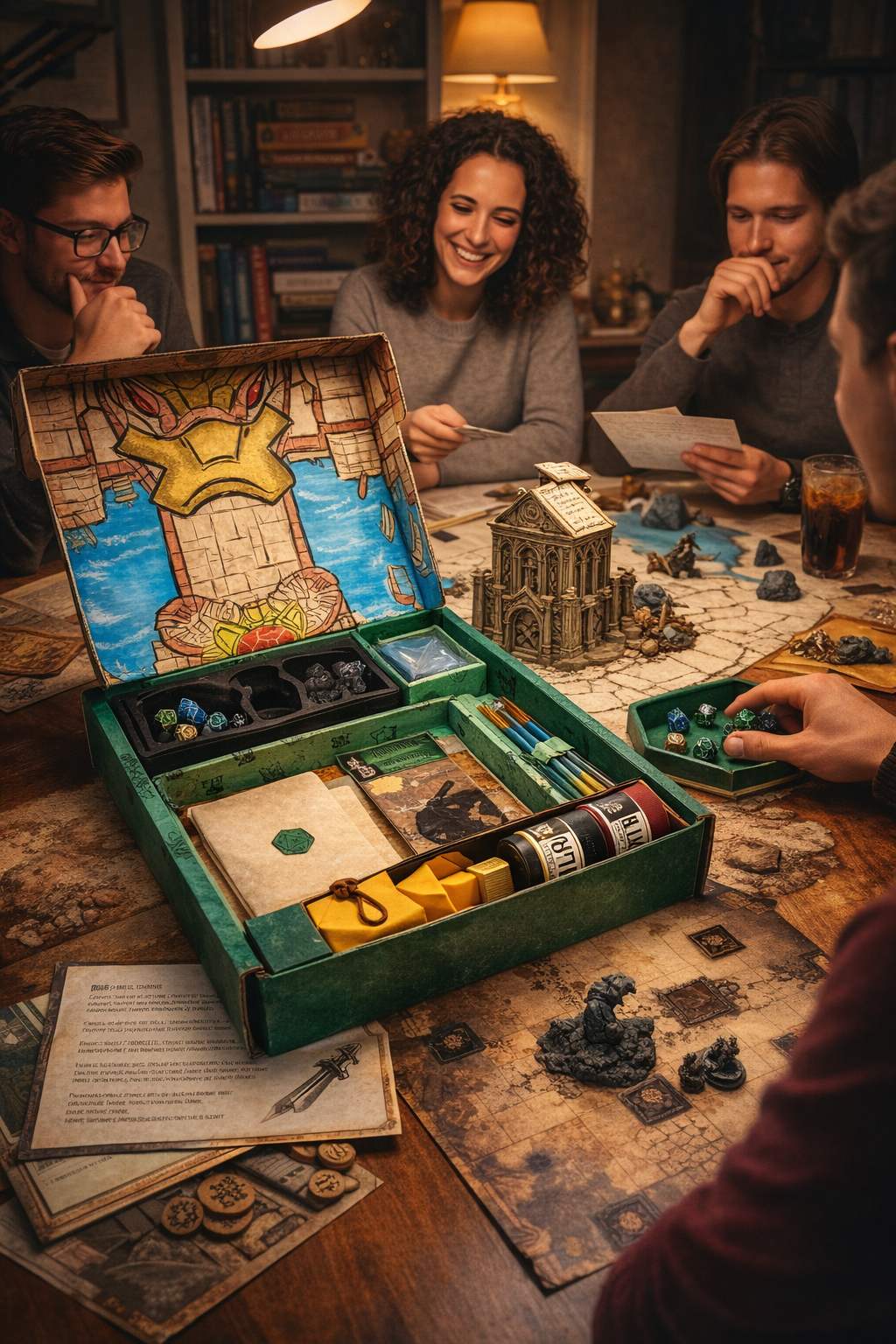 Fold & Forge was developed as a unified visual experience set within a handcrafted fantasy realm where every delivery feels like a chapter in an unfolding quest. The branding avoids literal depictions of specific game characters and instead relies on symbolic elements such as maps, terrain tiles, miniature silhouettes, compass marks, inked borders, and parchment textures to establish atmosphere and storytelling.