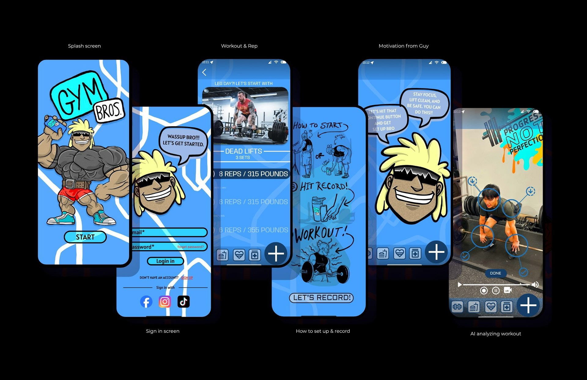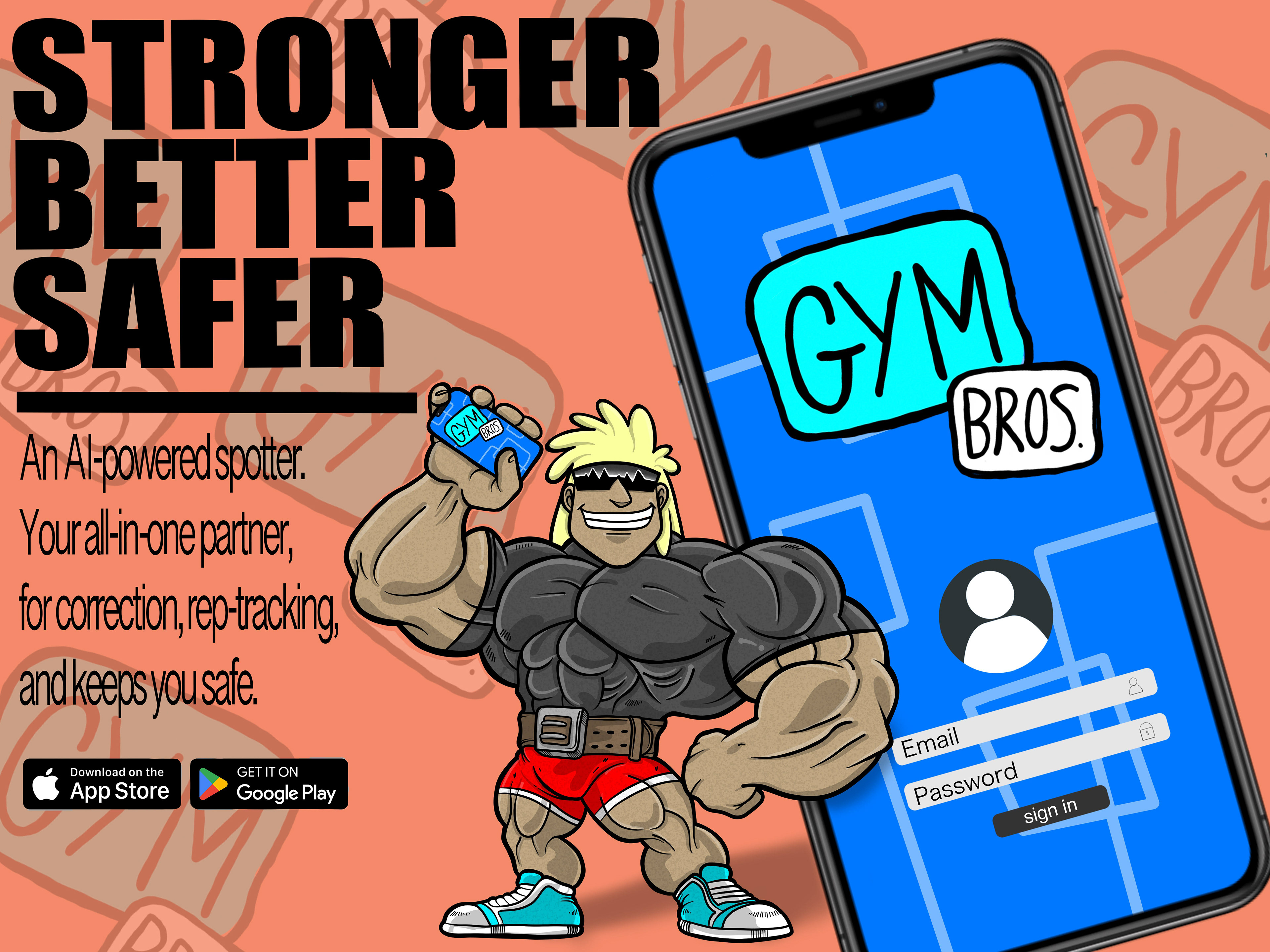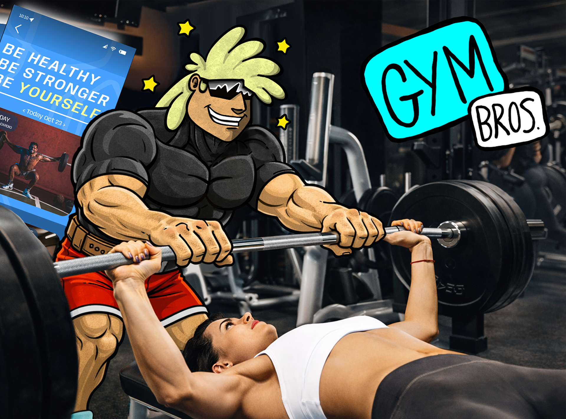 GymBros was developed as a unified visual experience set within a bold, high-energy performance environment. The branding avoids literal depictions of exercise equipment and instead relies on symbolic elements such as lightning bolts, lift passes, membership badges, protein icons, motion lines, and geometric power shapes to establish momentum and intensity.